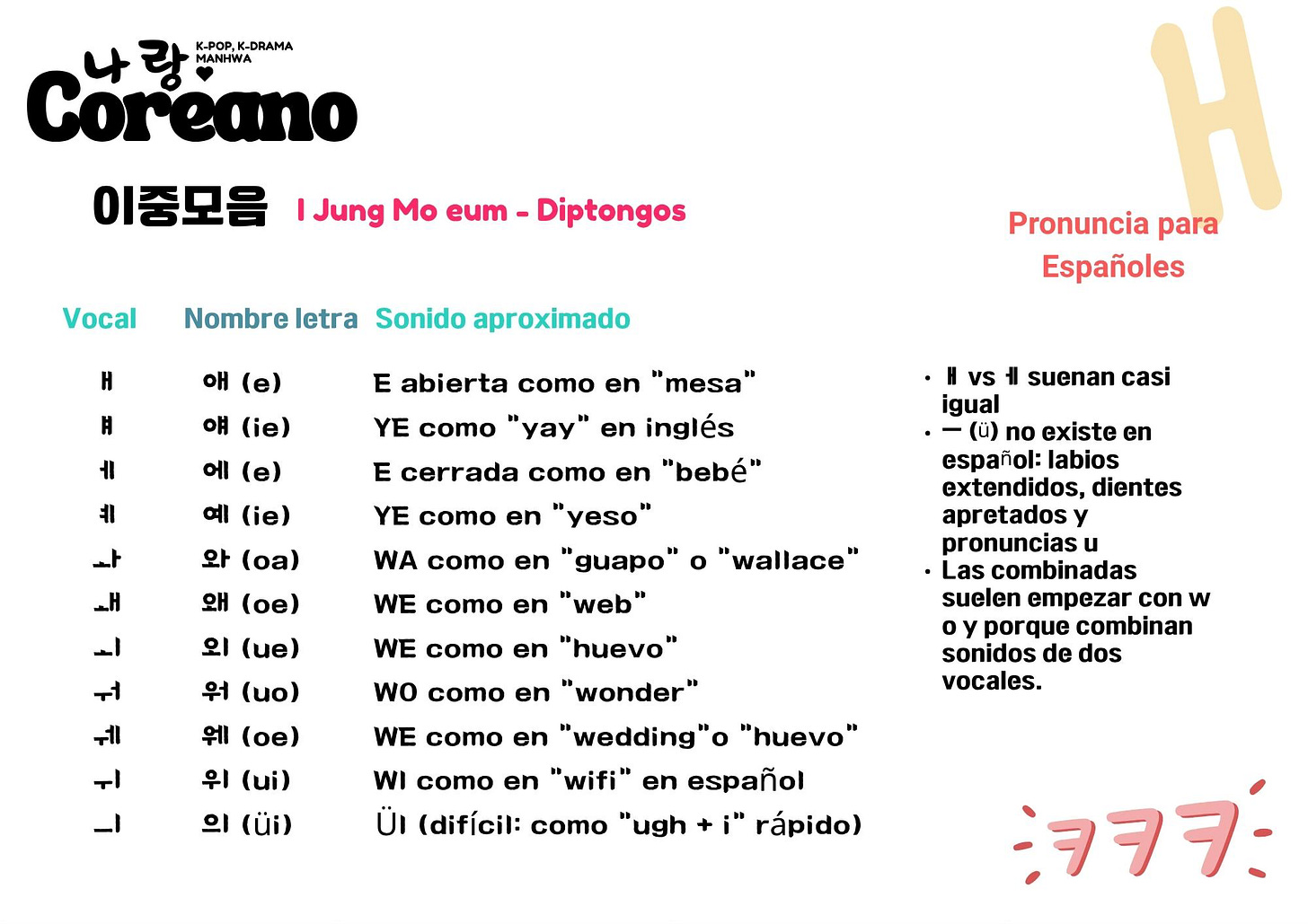 이중모음 – I-jung moeum, vocales compuestas o diptongos