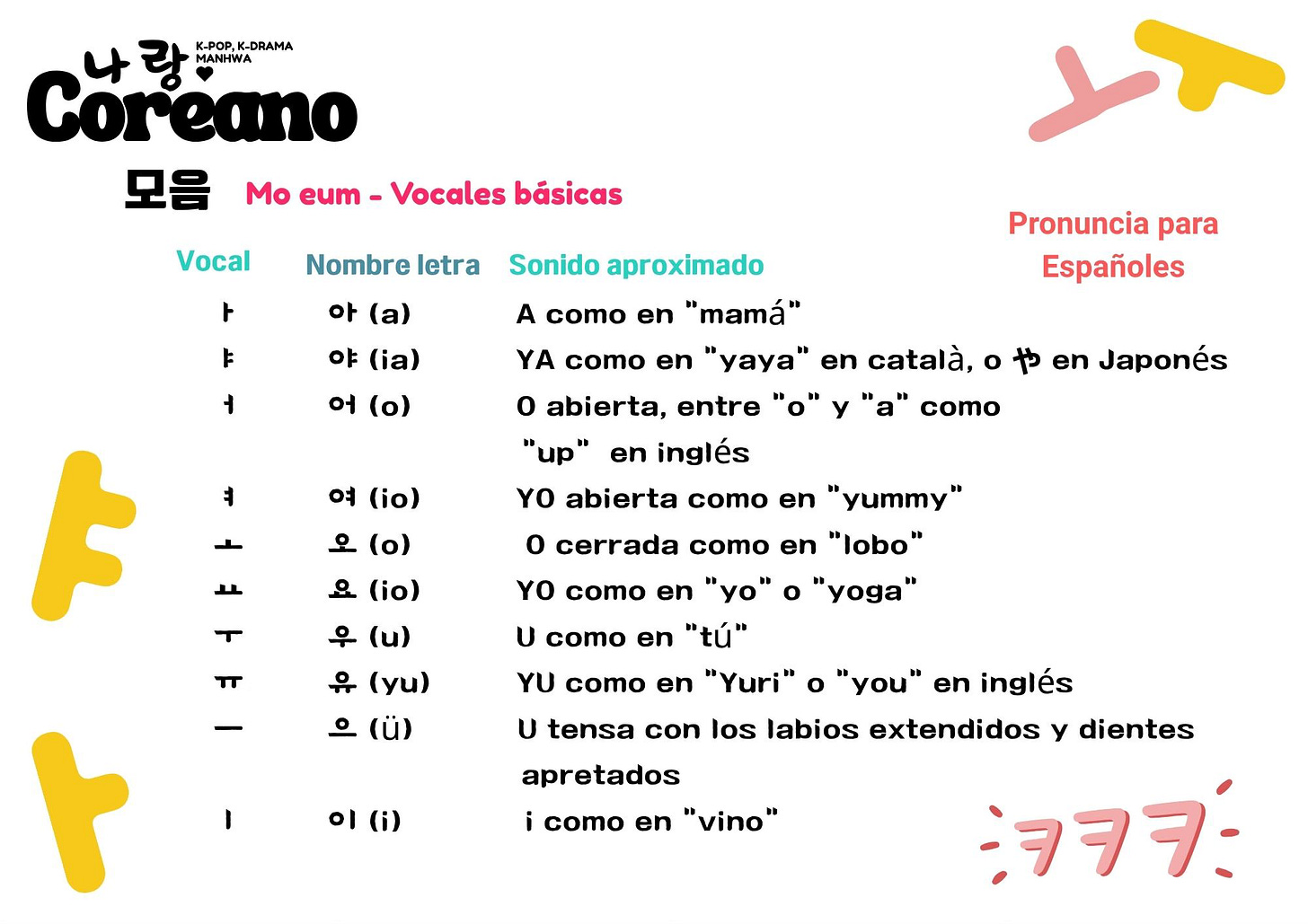 모음 – Mo-eum, vocales básicas