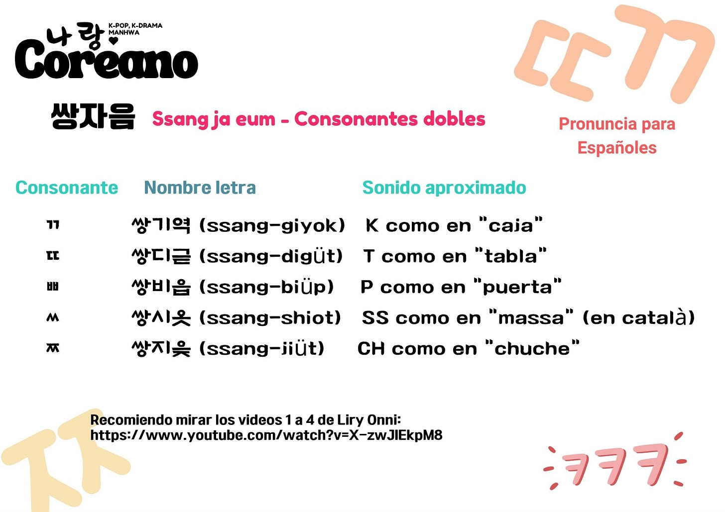 쌍자음 – Ssang ja-eum, consonantes dobles (tensadas)